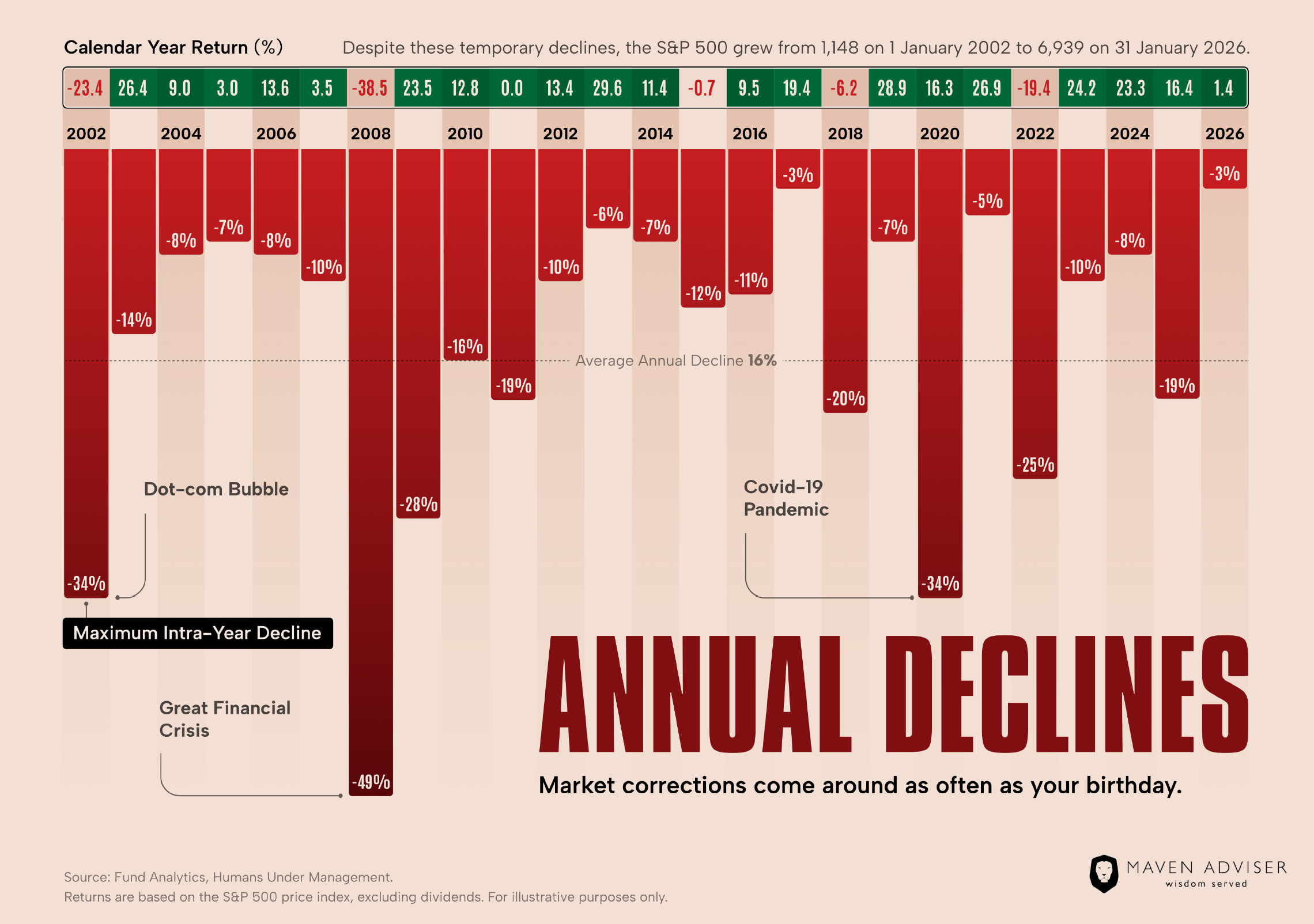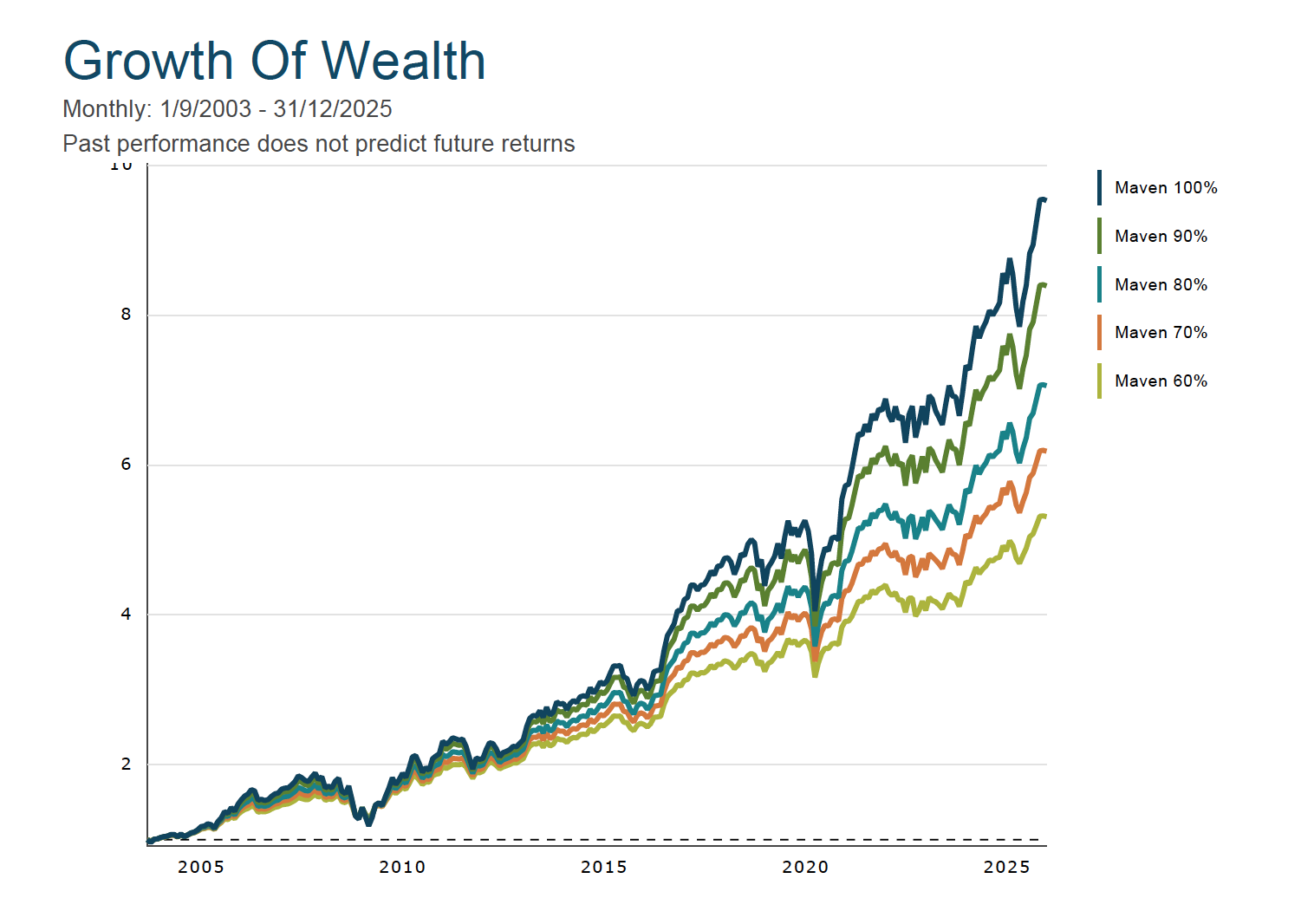 [1] Figures for the Maven Invest Model Portfolios only go back to 2017 (due to the date one of our funds was launched). We want to show you figures over a meaningful period of time. The above portfolio is based on the same equity-bond split as your Maven Invest Model Portfolio. It is NOT the same but is a decent proxy.